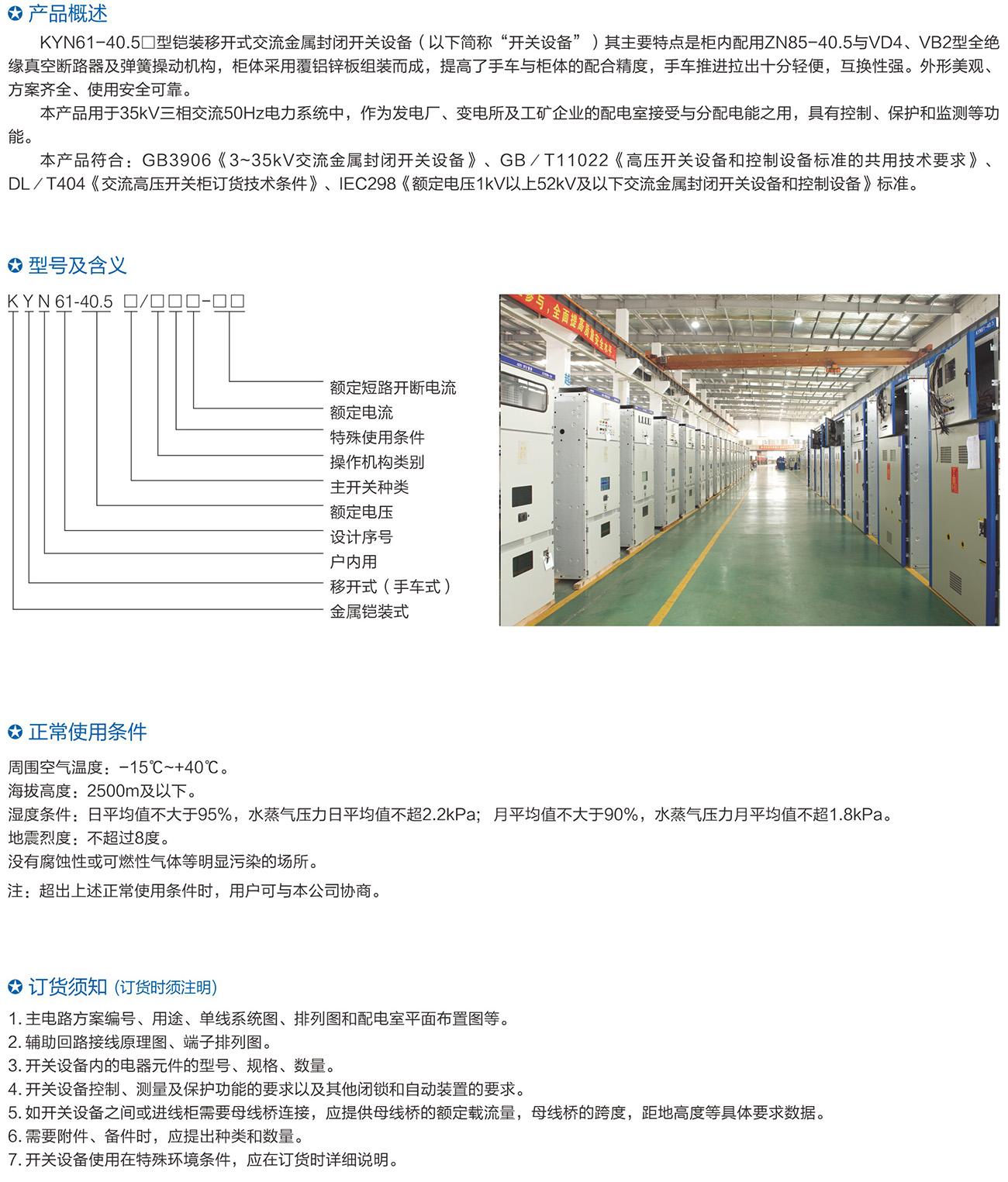 KYN61-40.5口型铠装移开式交流金属封闭开关设备